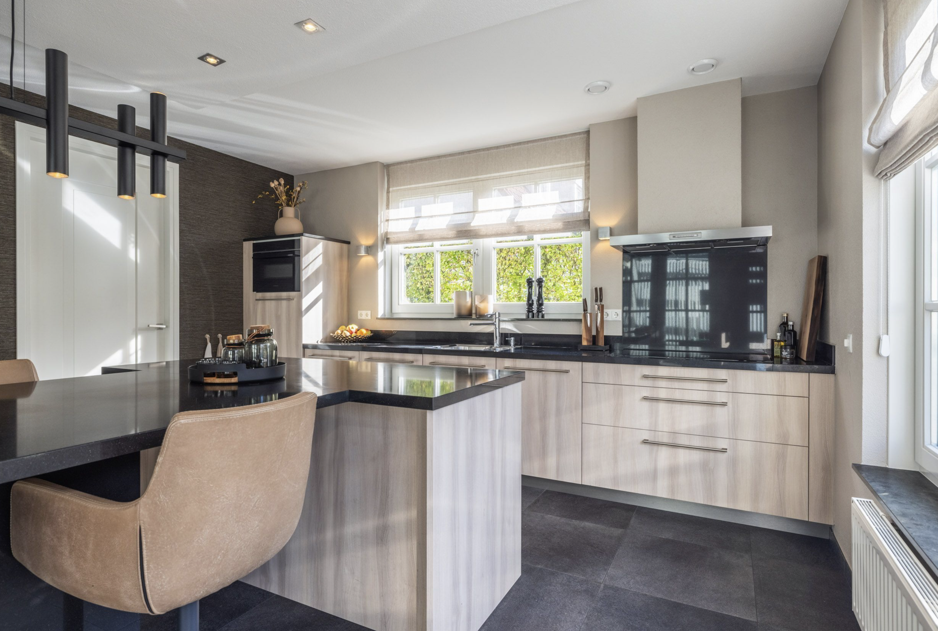 De keuken hebben we ontworpen met zowel esthetiek als functionaliteit in gedachten. Elk detail, van de lay-out, de keuze van materialen en apparatuur, is zorgvuldig gekozen om een ruimte te creëren die niet alleen gezellig is om in te koken, maar ook praktisch in gebruik.